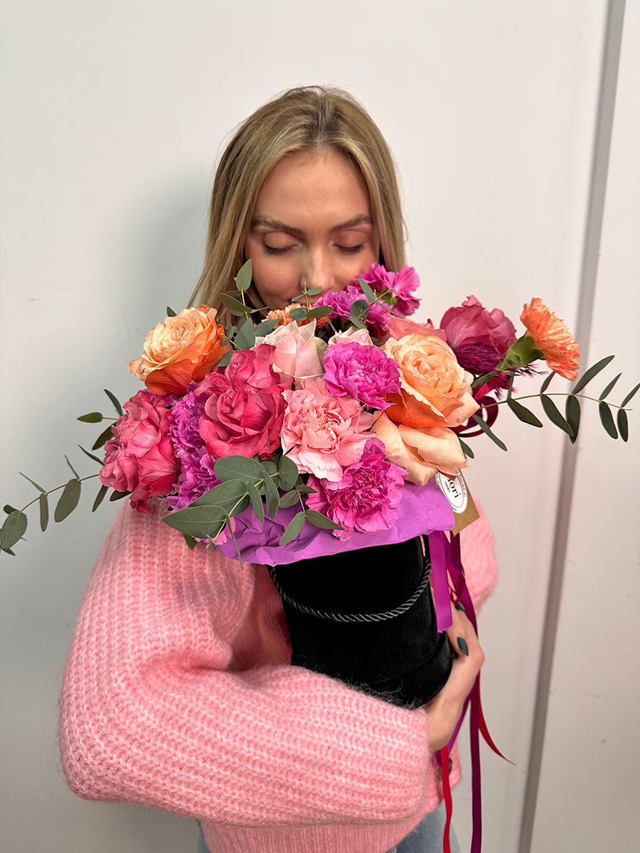 Flowerbox flowers in amaranth color MIX. The composition from the photo is in the “very large” size.