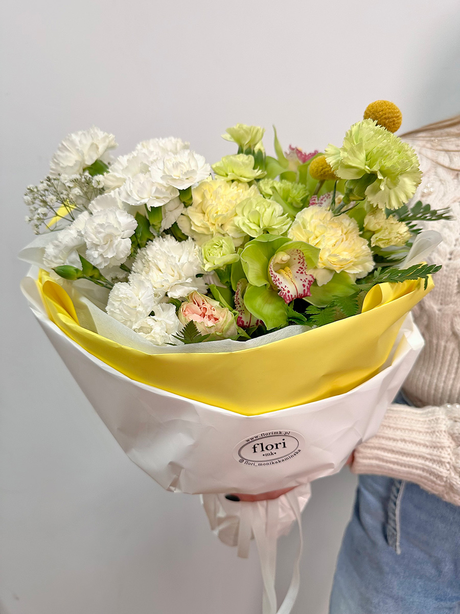 Букет квітів у жовтому кольорі MIX. Композиція на фото в розмірі “великий”.