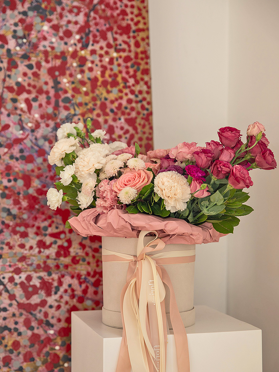 Квіткова коробка Flori у відтінках рожевого. Композиція на фото в розмірі “великий”.